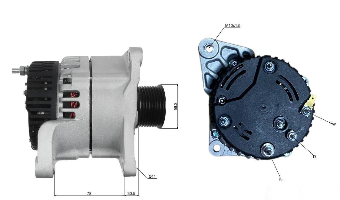 11.204.116, AAK5808, IA1211, MG69, 32008611, 32008650. Özellikler: 24V, 55A, 8PK, 56mm ISKRA / LETRIKA JCB Motor Çeşitli Modeller için Alternatörler, SANYOU tarafından üretilmiştir.